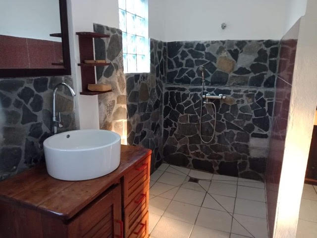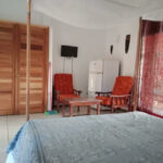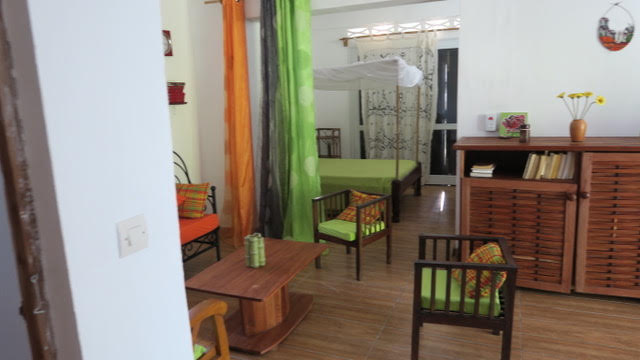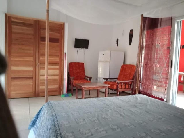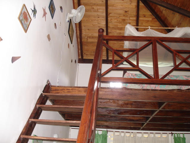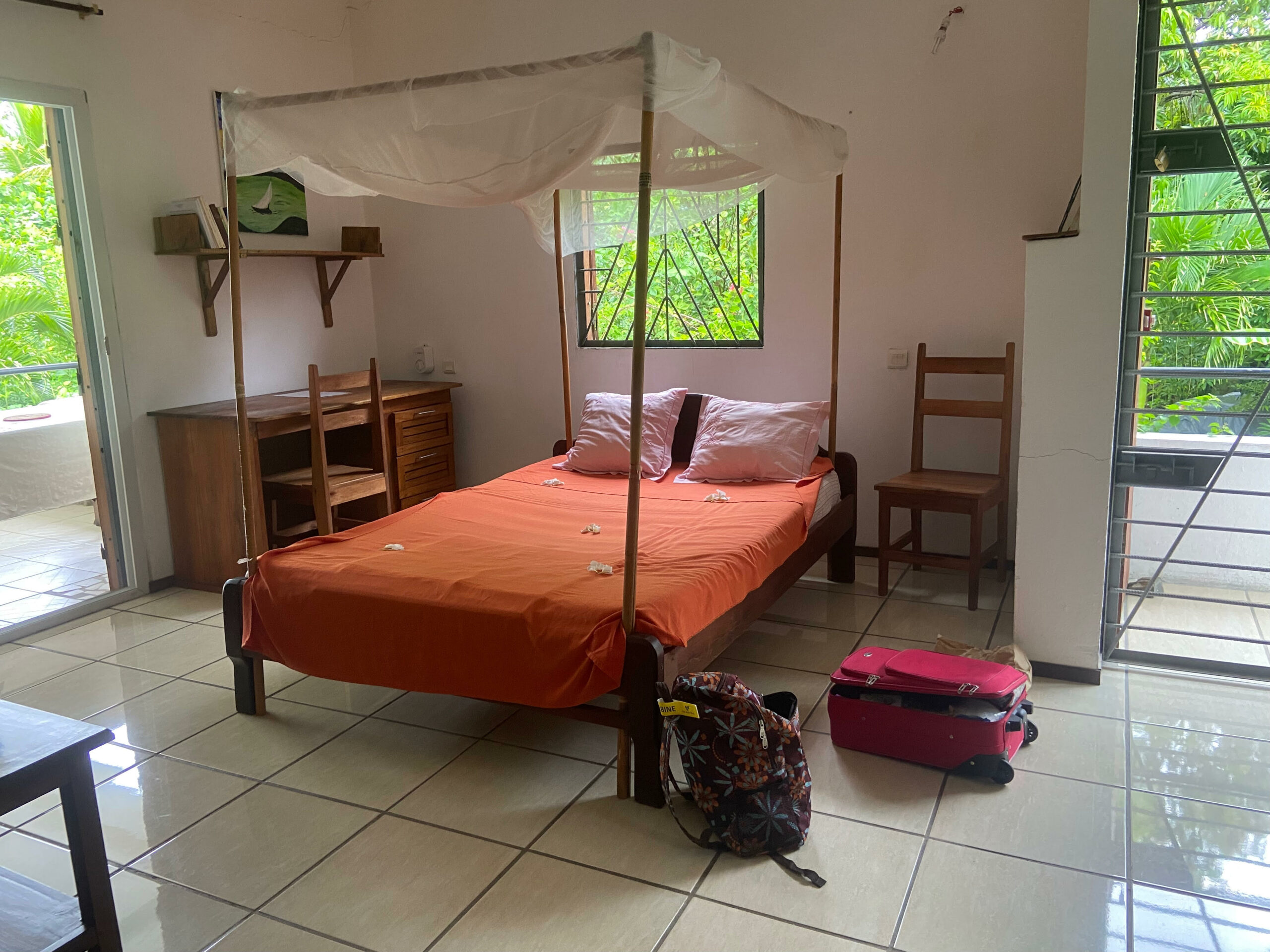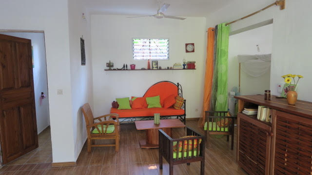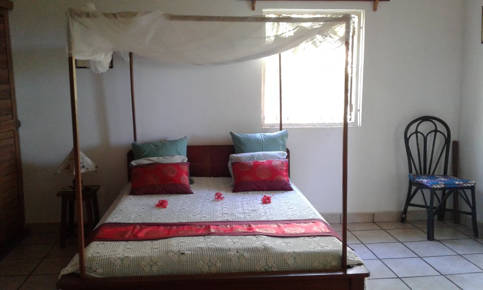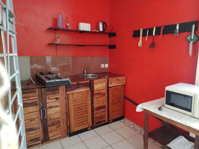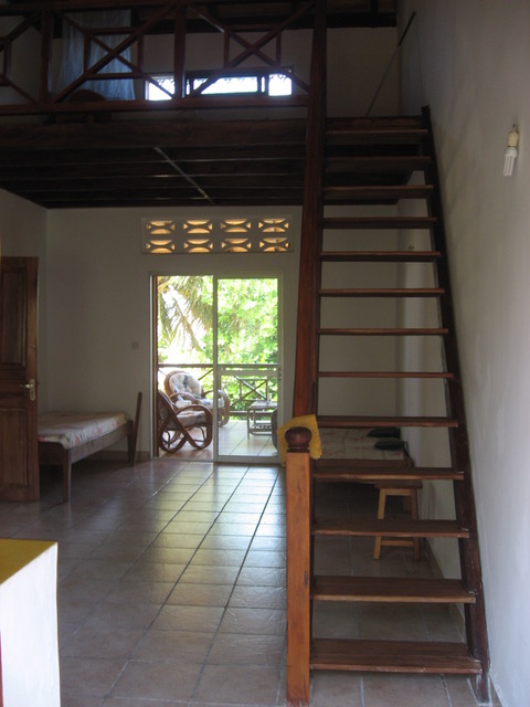 Chaque appartement dispose d'une grande terrasse, cuisine équipée, une chambre en bas et une mezzanine avec couchage pour deux autres personnes, une belle salle de douche et toilettes. Hauteur sous plafond, boiseries et vue imprenable sur un magnifique jardin tropical et la plage et la mer juste en face, font le charme de ce lieu. (50 euros la nuit)